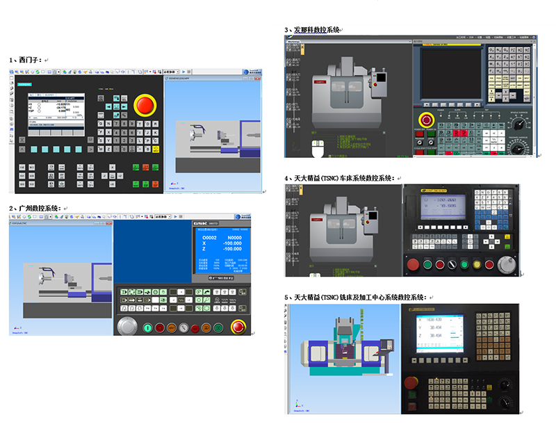 多界面數(shù)控教學系統(tǒng)具有多種如天大精益(TSNC)、發(fā)那科(FANUC)、西門子(SINUMERIK)等主流數(shù)控車、銑及加工中心仿真操作,并可以根據教學需要增加廣數(shù)、凱恩帝等仿真教學系統(tǒng)。該教學系統(tǒng)是結合機床廠家實際加工制造經驗與高校教學訓練一體所開發(fā)的,執(zhí)行多種主流數(shù)控指令及編程方式的數(shù)控系統(tǒng)仿真教學系統(tǒng),具有編程和加工仿真功能,可大大減少昂貴的設備投入,通過該系統(tǒng)可以使學生達到實踐操作訓練的目的。